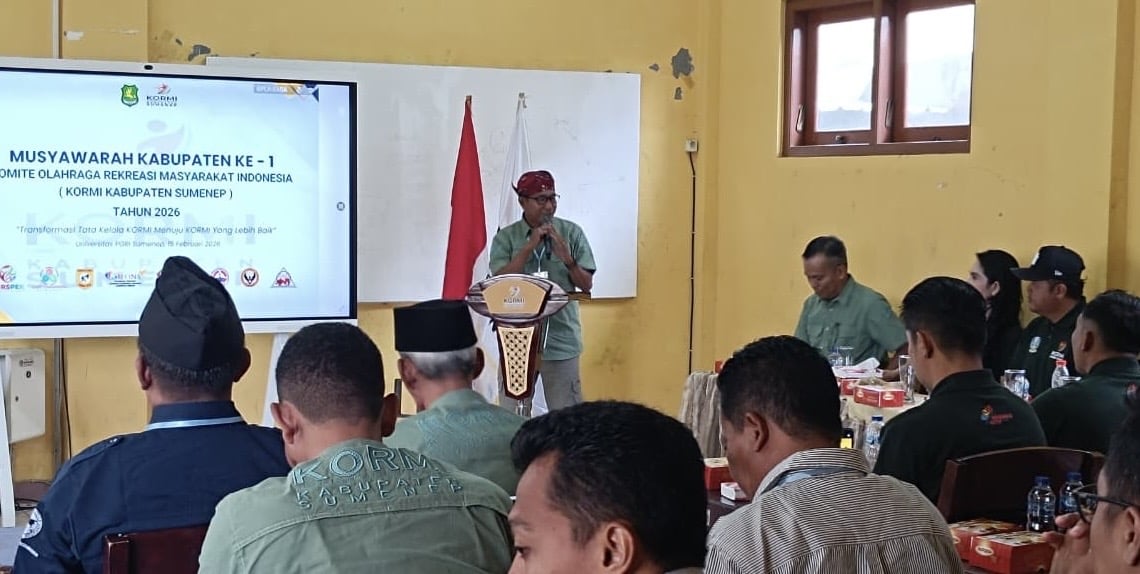 asatoe.co, Sumenep – Imam Syafi’i resmi terpilih secara aklamasi sebagai Ketua Komite Olahraga Rekreasi Masyarakat Indonesia (Kormi) Kabupaten Sumenep periode 2026-2030. Ia terpilih dalam Musyawarah Kabupaten (Muskab) ke-I Kormi yang digelar di Universitas PGRI Sumenep (UPI), Minggu (15/2/2026).
