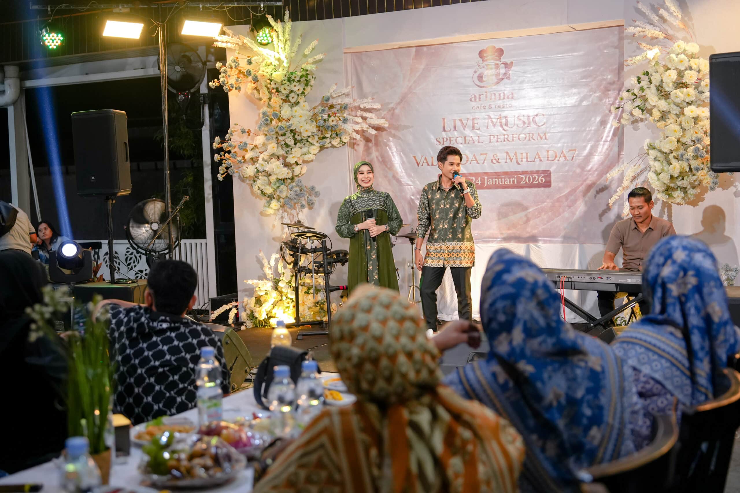 asatoe.co, Sumenep – Arinna Cafe & Resto menghadirkan hiburan spesial melalui Live Music Special Performance pada Sabtu malam (24/1/2026). Dua finalis D’Academy 7 Indosiar, Valen DA7 dan Mila Nurwanti DA7, tampil memeriahkan suasana.